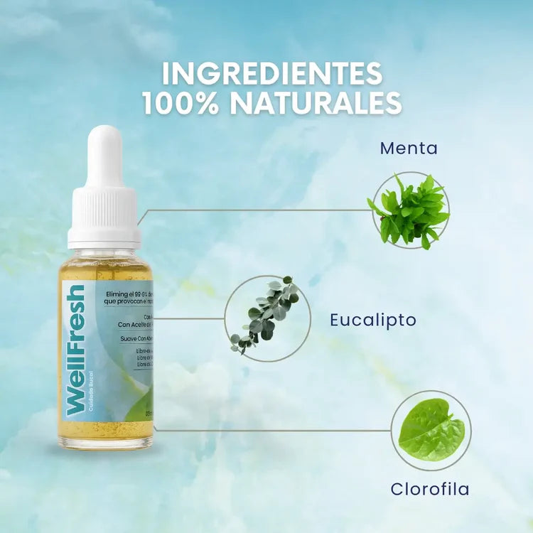Sí. Well Fresh está formulado con ingredientes naturales como menta, limón y canela, que neutralizan el mal aliento desde la primera aplicación. Miles de personas ya lo usan todos los días con excelentes resultados.